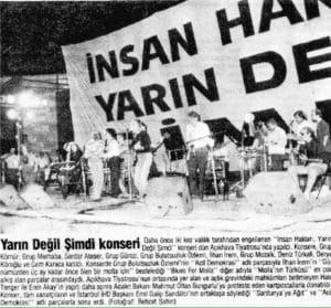 1989 | İlhan İrem, Grup Yorum, Bulutsuzluk Özlemi ve birçok müzik grubunun katıldığı İnsan Hakları, “Yarın Değil Şimdi” konseri Açıkhava Tiyatrosu’nda yapıldı.![]() |