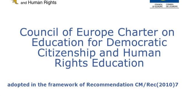 Avrupa Konseyi Demokratik Vatandaşlık ve İnsan Hakları Eğitimi Şartı, (CM/Rec(2010)7 sayılı Tavsiye Kararı) Avrupa Konseyine üye 47 ülke tarafından kabul edilmiştir. Şart geniş kapsamlı istişareler ve birkaç yıl süren çalışma sonucunda hazırlanmıştır. Üye ülkeler bakımından bağlayıcı olmayan ve tavsiye niteliğinde olan Şart, vatandaşlık ve insan hakları konularına ilgi duyan herkes için temel başvuru belgesidir. İnsan hakları alanında devletlerin iyi uygulamalar geliştirmesi ve bu kültürü gerek Avrupa’da ve gerekse Avrupa ötesinde yaymanı ve standartları yükseltmenin yolu tavsiye kararı ve ekinde yayınlanan metin ile çizilmiştir.