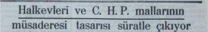 CHP’nin Malvarlığına El Konulmasına ve Halkevlerinin Kapatılmasına Dair Kanun – Resmî Daire ve müesseselerin siyasi partilere bedelsiz mal devredemiyeceklerine ve bu daire ve müesseselerle münfesih derneklere ait olup siyasi partilere terkedilmiş olan gayrimenkul mallarla bu partiler tarafından genel menfaatler için yaptırılmış olan binaların sahiplerine ve Hazineye iadesine dair Kanun