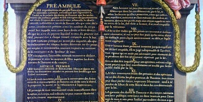 26 Ağustos 1789 şöyle başlar: Ulusal Meclis halinde toplanan Fransız halkı temsilcileri, toplumların uğradıkları felaketlerin ve yönetimlerin bozulmasının yegane nedeninin; insan haklarının bilinmemesi, unutulmuş olması ya da hor görülüp kâle alınmamasına bağlı olduğu görüşünden hareketle; insanın doğal, devredilemez ve kutsal haklarının resmi bir bildiri içinde açıklamaya karar vermişlerdir. Öyle ki, bu bildiri tüm toplum üyelerinin hiçbir zaman akıllarından çıkmasın, sürekli olarak onlara haklarını ve ödevlerini hatırlatsın. Öyle ki, yasama ve yürütme iktidarlarının faaliyetleri siyasal toplumların amacına uygun olup olmadığı her an denetlenebilsin ve bu iktidarlara daha çok saygı gösterilsin. Öyle ki, bundan böyle yurttaşların basit ve tartışma konusu olmayan ilkelere dayanan istekleri hep anayasanın korunmasına ve herkesin mutluluğuna yönelik olsun. Sonuç olarak Ulusal Meclis Yüce Varlığın huzurunda ve himayesinde aşağıdaki İnsan ve Yurttaş Haklarını kabul ve ilan eder: