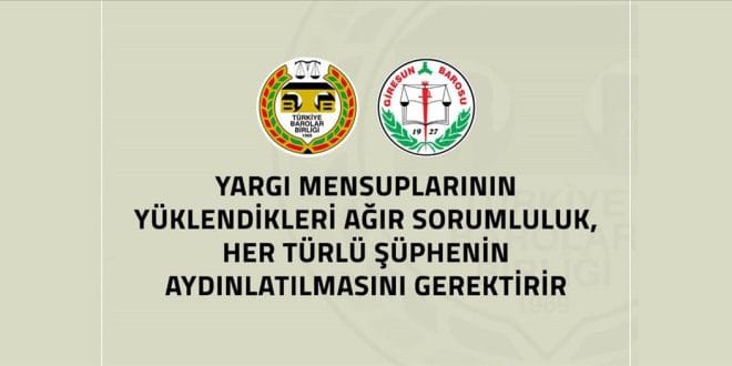 Türkiye Barolar Birliği ve Barolar, yargının tarafsızlığının ve bağımsızlığının korunması için kendi üzerine düşen sorumluluğu yerine getirecek, sürecin sonuna kadar takipçisi olacaktır.